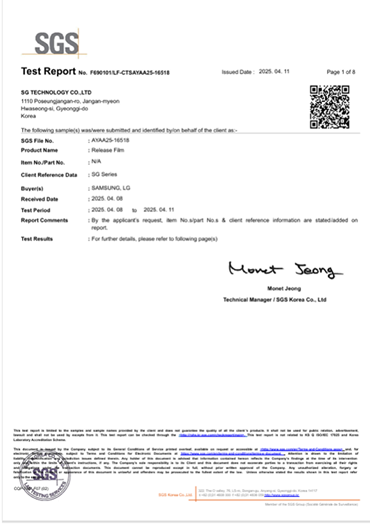 측정방법 : 무처리 PET(FFC FILM)에 제품 부착 후 측정
